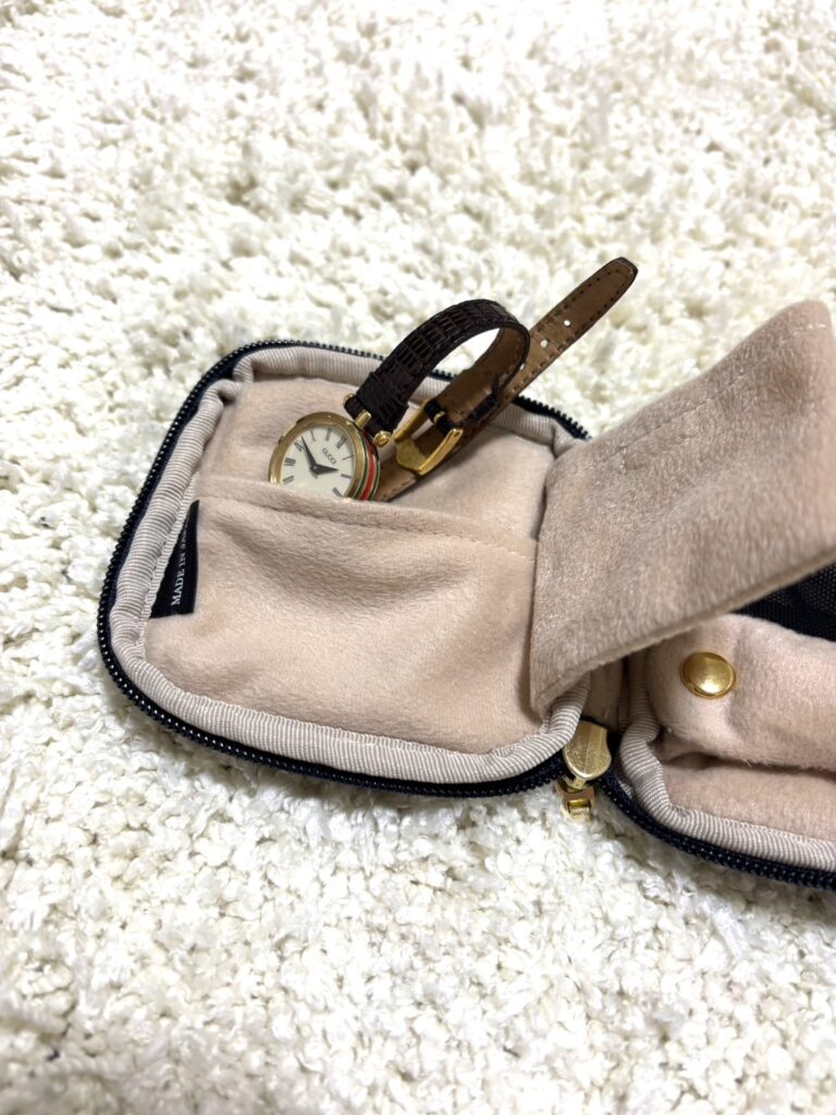 左側のフリーポケットには時計を入れています。ブレスレットやブローチも入れられるみたいです。